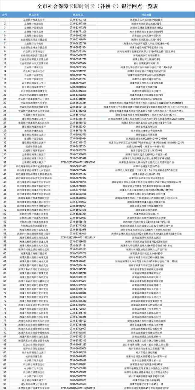 附:全市社會保障卡即時制卡(補(bǔ)換卡)銀行網(wǎng)點(diǎn)一覽表